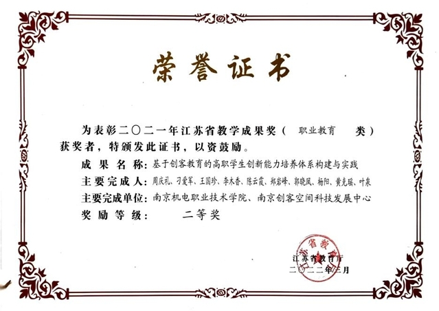 本专业教师基于科技创新与CDIO项目化教改,对学生分阶段分层次进行专利创新能力培养和提升,以专利创新教育改革为突破口,构建专利创新素质教育体系。实施结果参与获得省教学成果奖二等奖1项:基于创客教育的高职学生创新能力培养体系构建与实践。