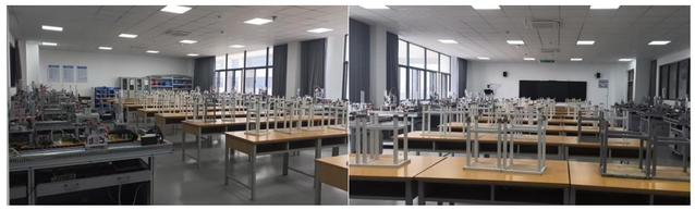 (1)机电设备安装与调试实训室。该实训室有机融合了机械、电气、传感器、电机变频调速、步进电机驱动控制,能开展任务驱动的项目教学。
