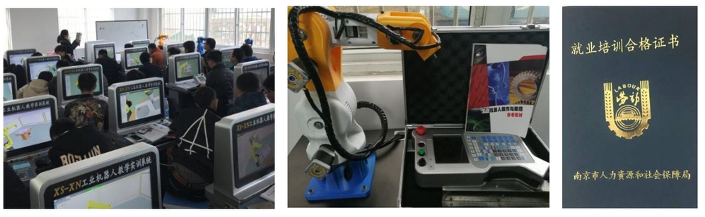 2015年6月,受南京市人力资源和社会保障局委托,机电一体化技术团队利用暑假开发了《工业机器人应用工程》新工种,编写了教材,并开发了实训装置。