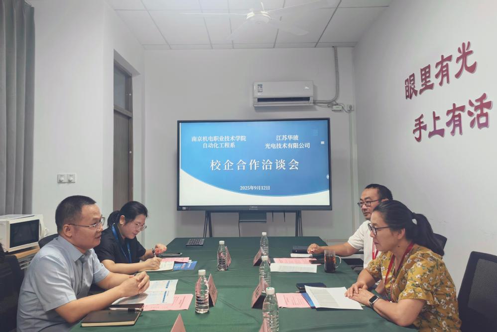 为深化产教融合、促进校企协同育人,进一步拓宽学生实习就业渠道,9月12日,江苏华玻光电技术有限公司人力资源总监祁培东、人事主管王红燕等一行4人莅临自动化工程系开展校企合作洽谈。自动化工程系主任张海红、支部书记杨军、副主任顾晟吉及就业干事俞青热情接待,双方围绕人才培养、实训合作、就业输送展开深入交流。