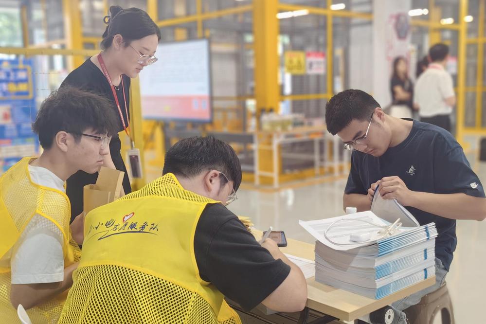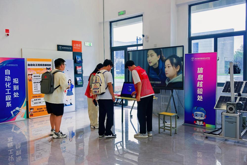 迎新现场,一群“小黄人”来回穿梭,格外亮眼。由系团委、学生会和各班级学生骨干组成“南小电”志愿服务队,主动上前协助搬运、指引路线,为新生答疑解惑、送上暖心问候,迅速消解了新生初入校园的陌生感。
