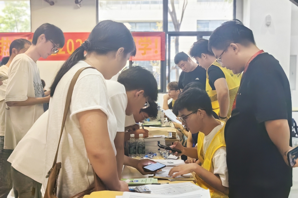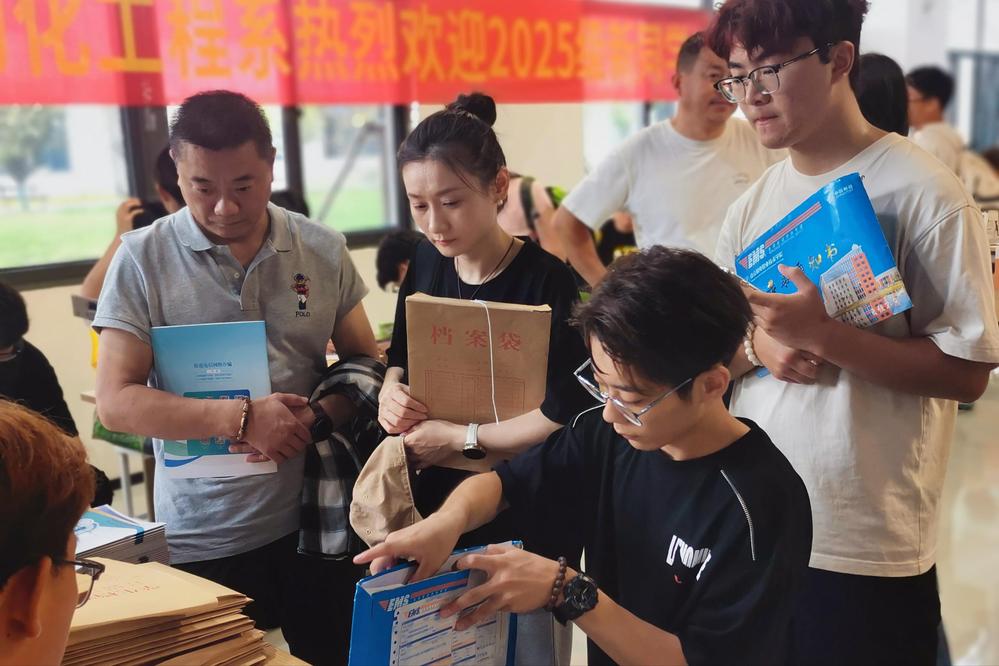在班级报到点,老师们细心地为新生们办理入学手续,接收档案、发放校园卡等物品,耐心解答新生和家长们的疑问。新生青春的笑脸、家长放心的神情、老师忙碌从容的身影,交织成一幅温馨动人的迎新画卷。