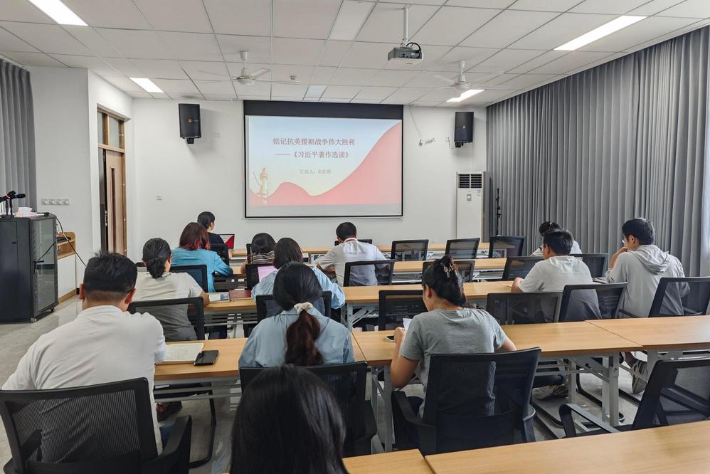 9月25日下午,自动化工程系党支部在敏行楼401开展深学细悟《习近平著作选读》第二卷:铭记抗美援朝战争伟大胜利。本次专题政治学习由党员朱红娟主讲,支部全体党员参加集中学习。