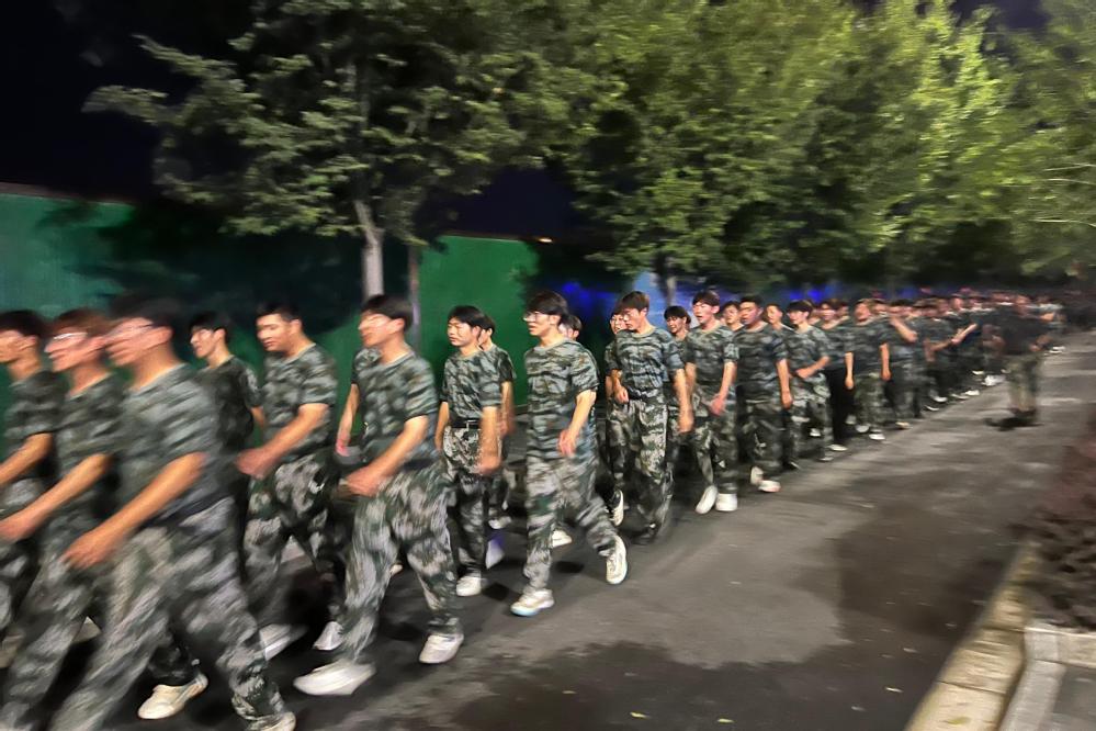 拉练全程,系学工团队始终坚守现场,全程陪伴在新生身旁,及时提供支持与引导,成为大家安心参训的坚实后盾。训练场上,新生们精神抖擞,嘹亮口号此起彼伏,步伐整齐划一,队列始终保持有序。他们以高度专注的态度和饱满热情,展现出新时代青年的坚韧毅力与团队凝聚力,青春活力在夜色中格外耀眼。