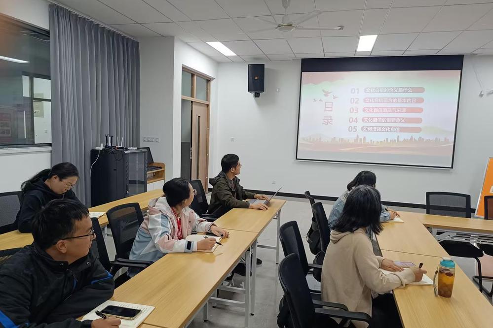 学习会上,林敏老师首先解析了文化自信的定义,强调其不仅是对自身文化价值的认同,更是推动国家软实力提升的精神基石。随后,通过梳理中华优秀传统文化的深厚底蕴、革命文化的鲜明特色以及新时代中国特色社会主义的制度优势,生动说明了文化自信的底气来源。同时,林敏老师指出,在全球化背景下,增强文化自信需坚持开放包容,推动中华文化创新性发展,并通过“讲好中国故事”提升国际传播力。