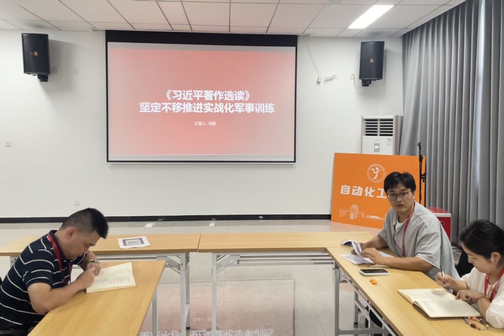 10月16日,自动化工程系党支部在敏行楼401开展深学细悟《习近平著作选读》第二卷:坚定不移推进实战化军事训练。本次学习由党员刘鹏老师主持,旨在深入学习贯彻新时代习近平强军思想,强化教师队伍的国防意识和使命担当。