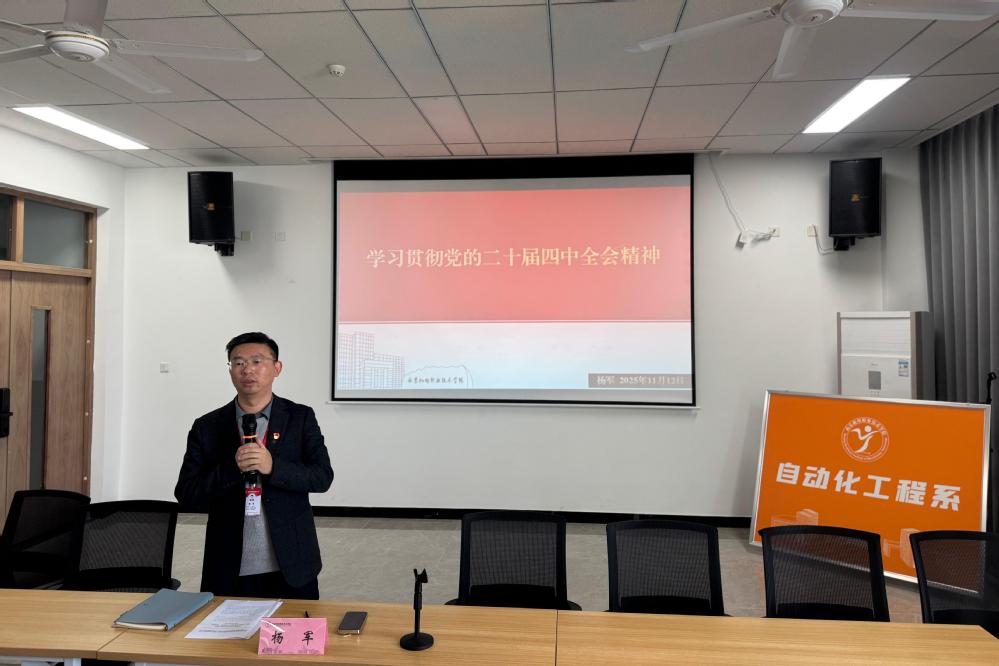 杨军同志以《学习贯彻党的二十届四中全会精神》为主题展开授课,从全会召开的时代背景、核心部署等维度,结合高校基层党建与专业人才培养实际,帮助学员系统把握全会精神的丰富内涵,引导大家将会议要求与自身成长发展相结合,明确青年一代的责任与方向。