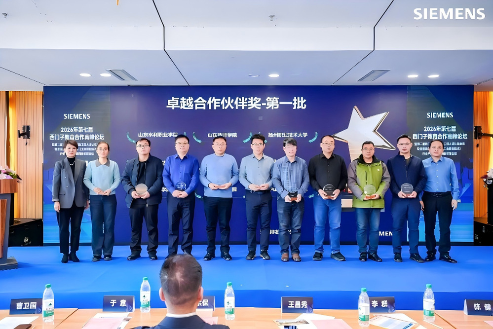 论坛期间,我校与西门子公司持续深化合作,积极探索创新教育模式,在提升学生实践能力与推动产学研一体化方面表现突出,被授予“卓越合作伙伴奖”。这一荣誉标志着双方在共育高素质技术技能人才方面的努力获得高度认可。